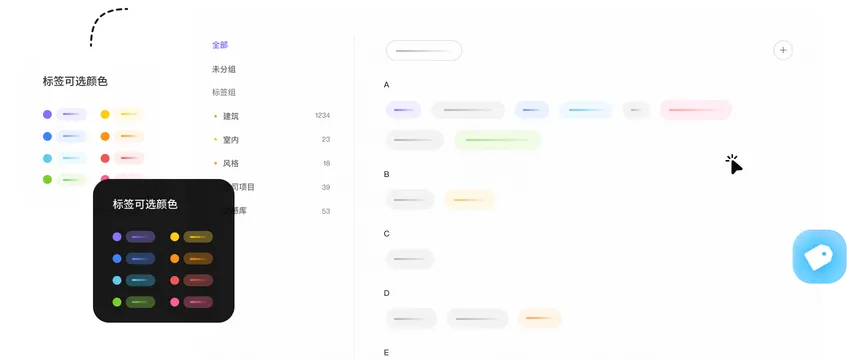 支持标签和标签分组,并且可以为不同的标签组设置颜色
